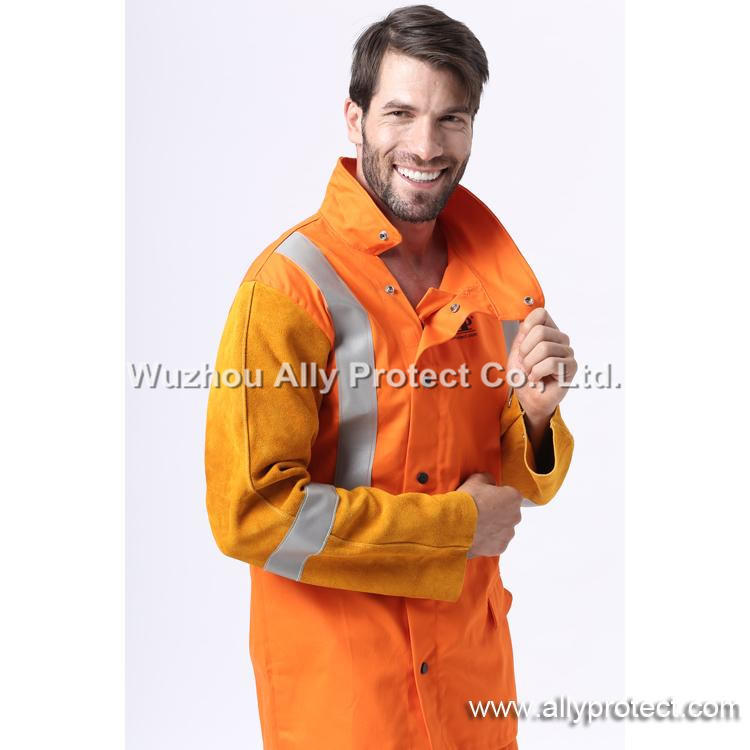 AP-2730 Orange FR & Golden Leather W/HI-VIS Reflective Tape JacketAP-2730 Orange FR & Golden Leather W/HI-VIS Reflective Tape JacketAP-2730 Orange FR & Golden Leather W/HI-VIS Reflective Tape Jacket