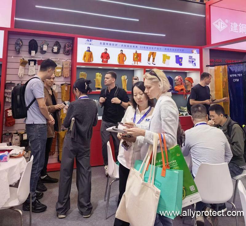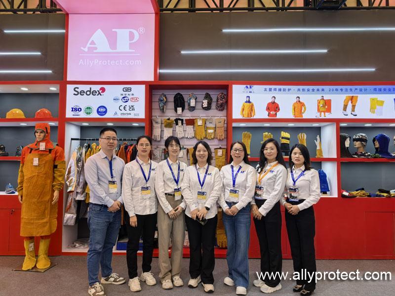 展會(huì)現(xiàn)場(chǎng),友盟防護(hù)以紅色為主色調(diào)的展位格外醒目,品牌標(biāo)識(shí)“AP(AllyProtect)”與“友盟焊接防護(hù)·共創(chuàng)安全未來(lái)”的標(biāo)語(yǔ)熠熠生輝,直觀傳遞出品牌專(zhuān)注焊接防護(hù)裝備研發(fā)生產(chǎn)20年的專(zhuān)業(yè)底蘊(yùn)。展位內(nèi),系列焊接防護(hù)手套、防火阻燃防護(hù)服、防護(hù)面罩等核心產(chǎn)品整齊陳列,從基礎(chǔ)防護(hù)裝備到高性能定制產(chǎn)品,全面覆蓋焊接作業(yè)不同場(chǎng)景的防護(hù)需求,每一件產(chǎn)品都彰顯著友盟對(duì)品質(zhì)的嚴(yán)苛把控與技術(shù)創(chuàng)新的深耕。