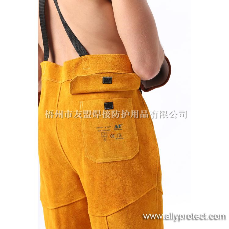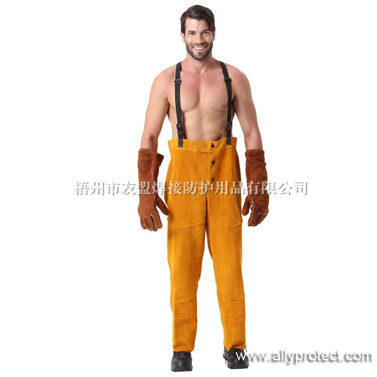 - 產(chǎn)品描述: 金黃色牛二層皮全皮焊褲,能夠在焊接飛濺嚴(yán)重的環(huán)境中,給使用者的身體提供安全有效的保護(hù)。