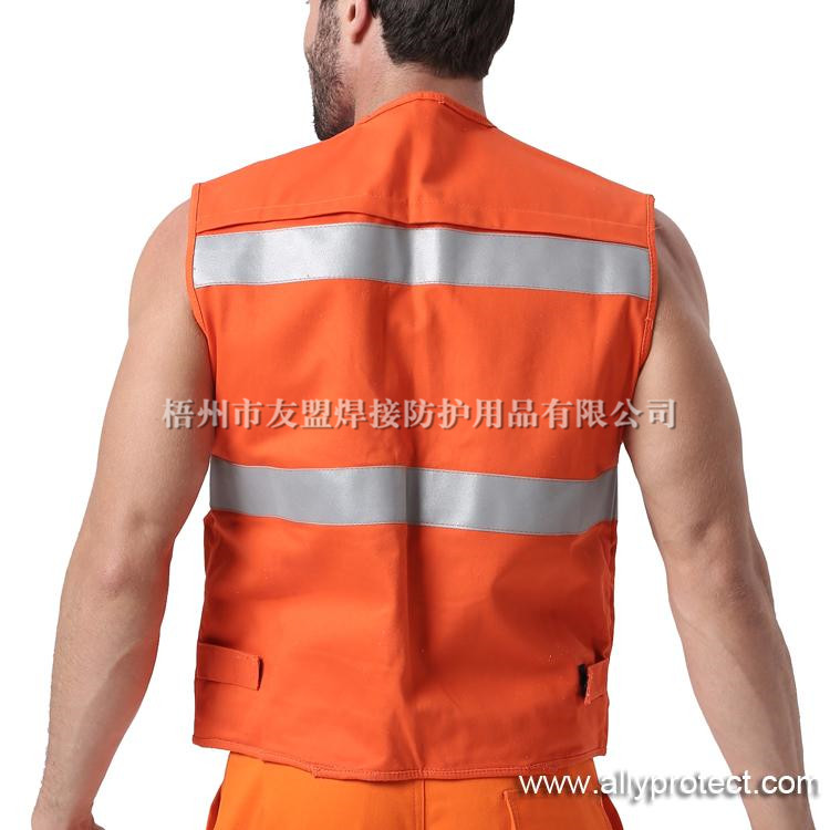 - 產品描述: 耐高溫焊接背心,11安橙防火布,永久阻燃,多口袋設計,方便耐用