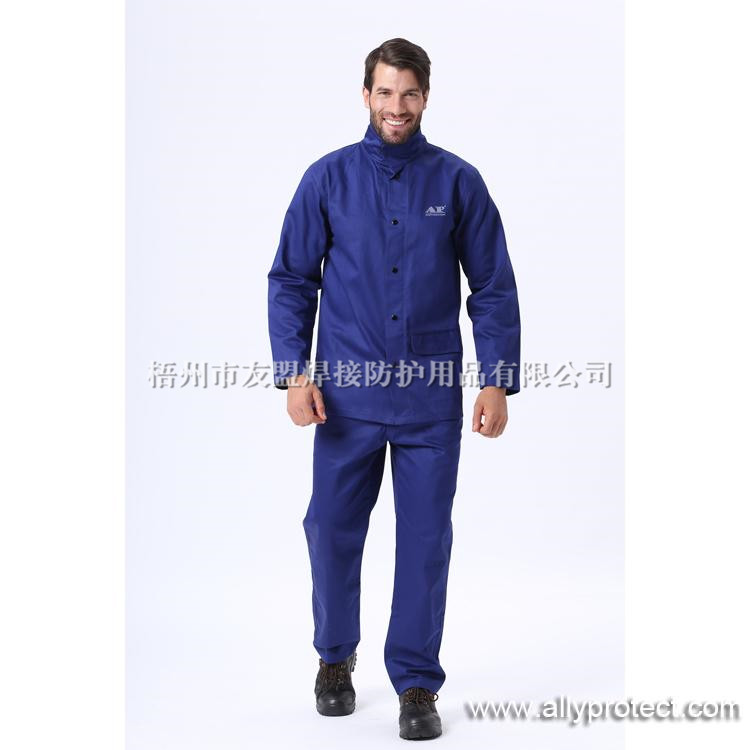 - 產(chǎn)品描述: 藍(lán)色防火阻燃服,可水洗不縮水,推薦適用于燒焊、鑄造、化工、石油、機(jī)電等有火焰或火警的危險行業(yè)。