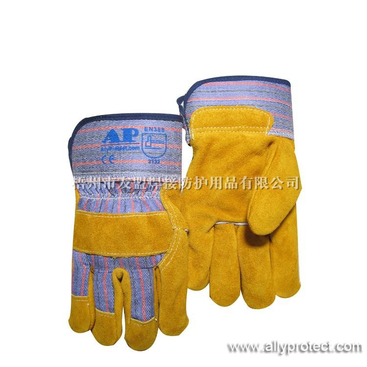 該款手套掌位部分采用耐磨、抗穿插的金黃色牛二層皮制成,質(zhì)地厚實且柔軟舒適,抗穿插及內(nèi)磨程度均勻;