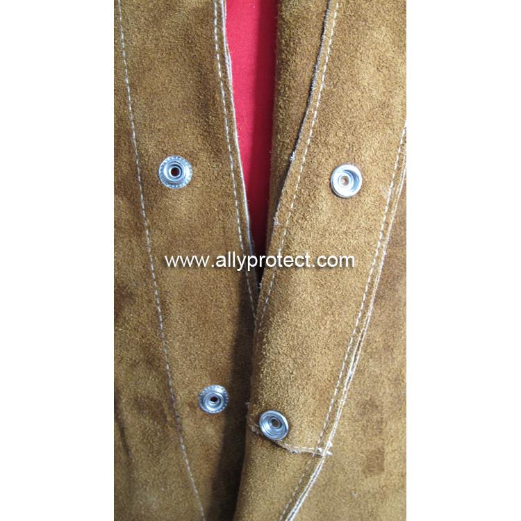 前胸防護(hù)條設(shè)計(jì),防止燒焊飛濺物濺入衣內(nèi),雙層皮設(shè)計(jì)防止撕脫。